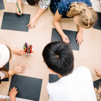 Inspiriert von den Gemälden der Ausstellung „Monets Küste. Die Entdeckung von Étretat“, können Kinder im Offenen Atelier selbst künstlerisch tätig werden.