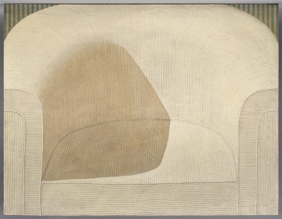 The current cabinet presentation in the Garden Halls showcases works of art by Italian artist Domenico Gnoli (1933–1970), who captured hairstyles, ties, shoes, armchairs, and other motifs, always in a detail-like manner that lends them a voluminous quality.