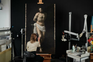 For these reasons, the work has been undergoing extensive conservation and restoration since early 2024. This includes the removal of older, non-original varnish layers and discoloured retouchings. The treatment is now in its final phase: the retouching of losses.
