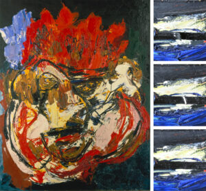 The “Portrait of Emmanuel Looten” is one of the series of “Têtes d’orage” (Storm Heads) executed by Karel Appel in Paris between 1955 and 1956. Appel painted the work on medium-thick natural-fibre fabric he evidently stretched and primed himself. The painting owes its vivaciously dynamic surface structure, which is highly characteristic of this artist’s style, to the wild, pastose paint application with wide brushes and palette knives. The artist added the black paint last simply by pressing it out of the tube onto the canvas.